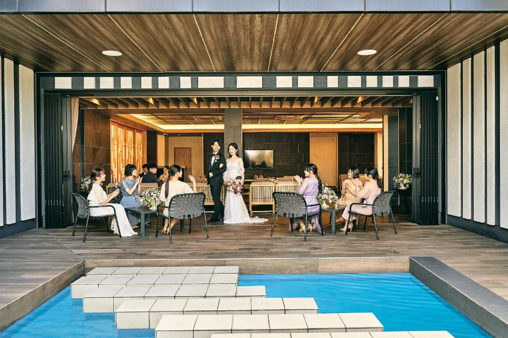 ホテルライクで巧みな意匠と並び、ウエディングの特別なおもてなしを徹底的に高めた造りの邸宅。