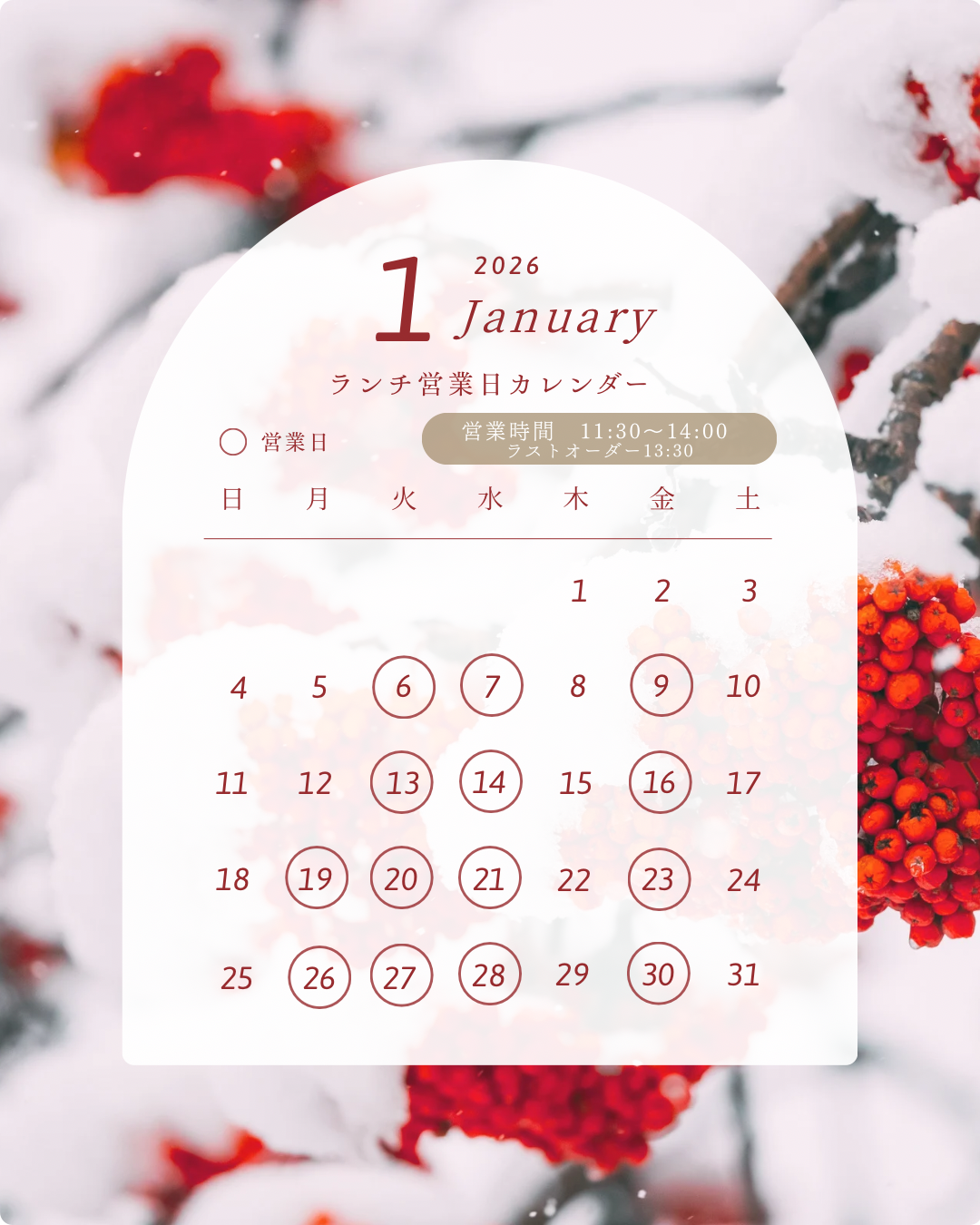 ご家族やご友人とのお食事はもちろん、年末のちょっとしたご褒美ランチにもおすすめです。