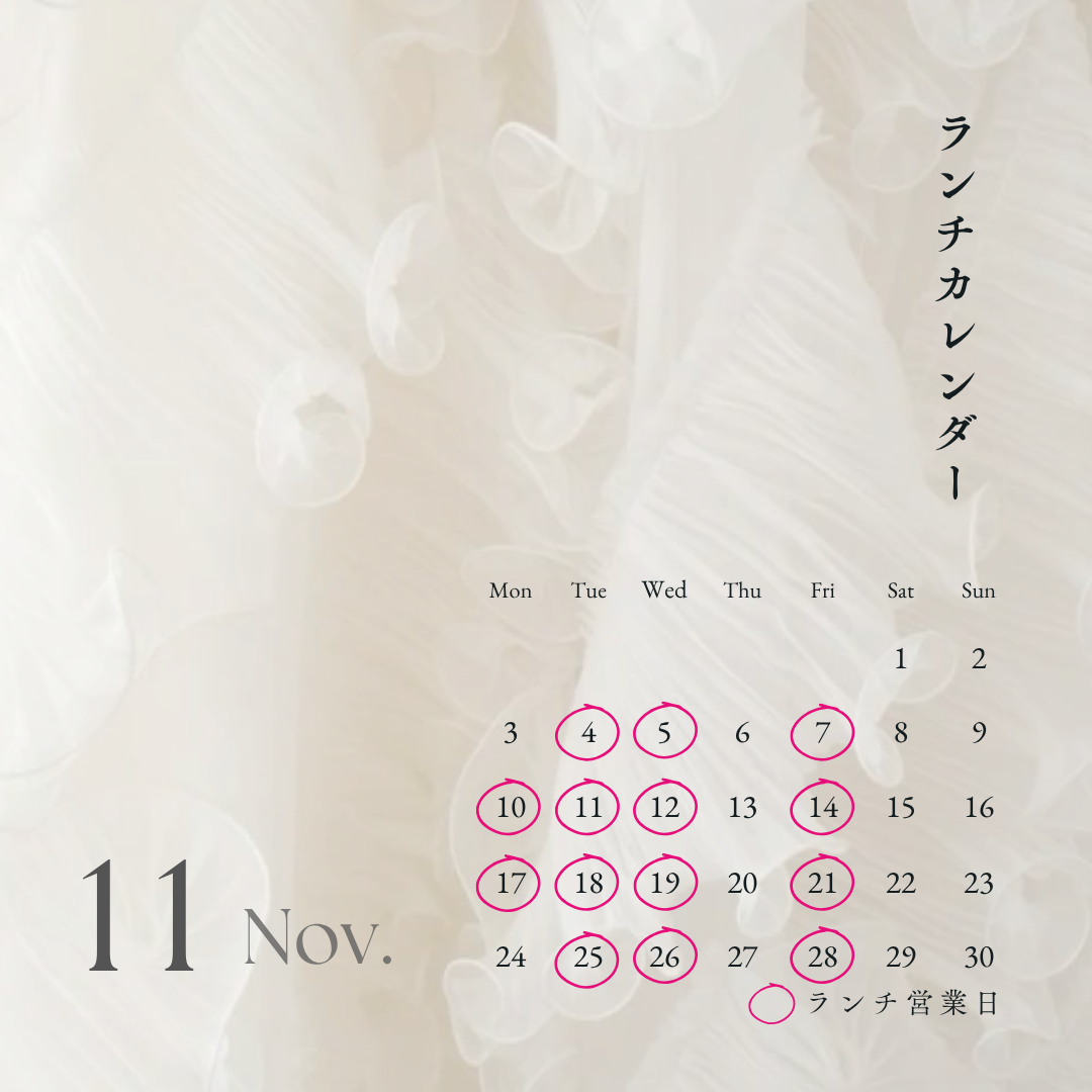 11/16(土)午前満席御礼 15:00以降 1組様ご案内可能です♪
