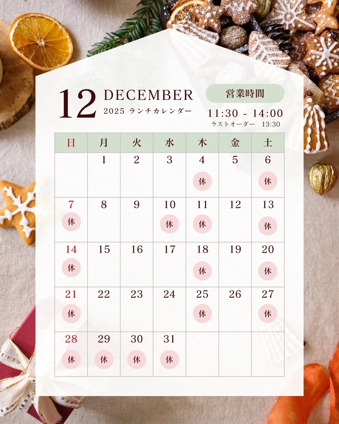 旬の食材を使用した、12月限定の特別ランチをご用意しております。