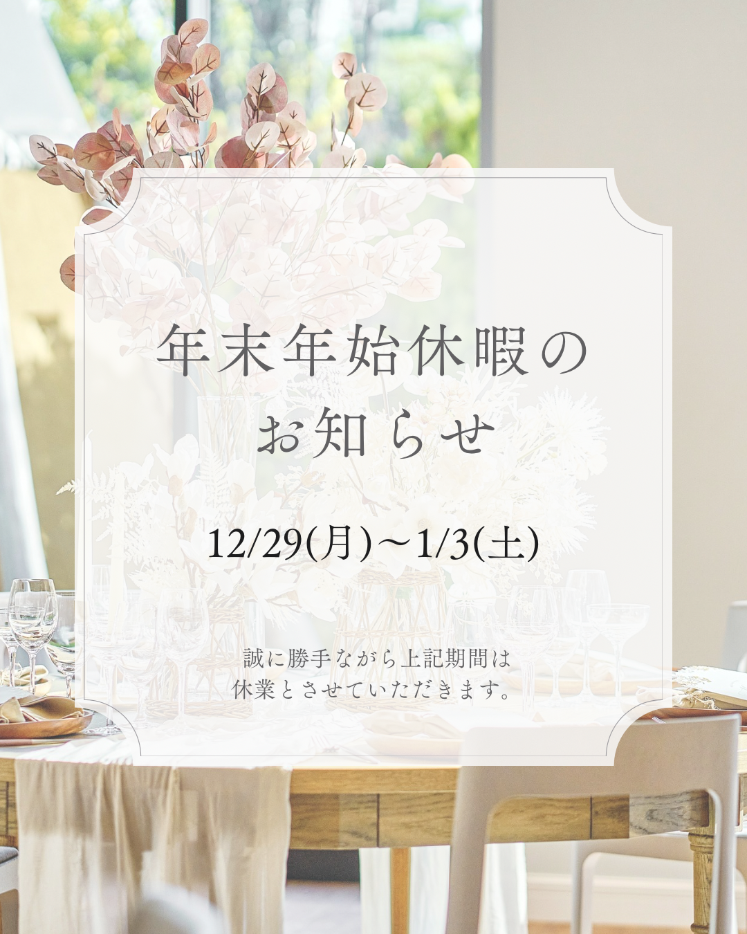 誠に勝手ながら、下記の期間を年末年始休業とさせていただきます。